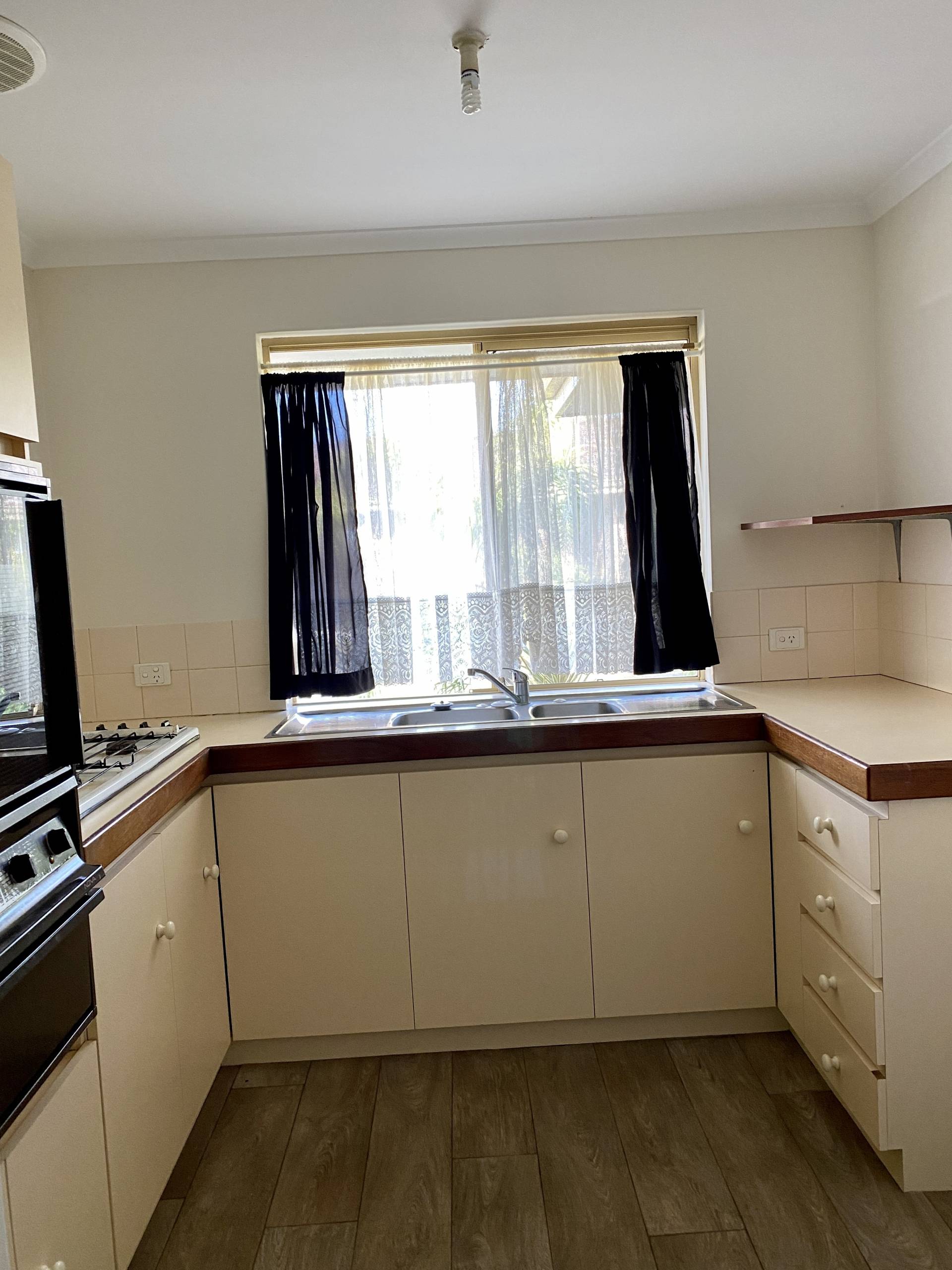 Walk inside to timber look flooring, an open plan lounge and dining and well organised separate kitchen with more than enough bench space and cupboards.