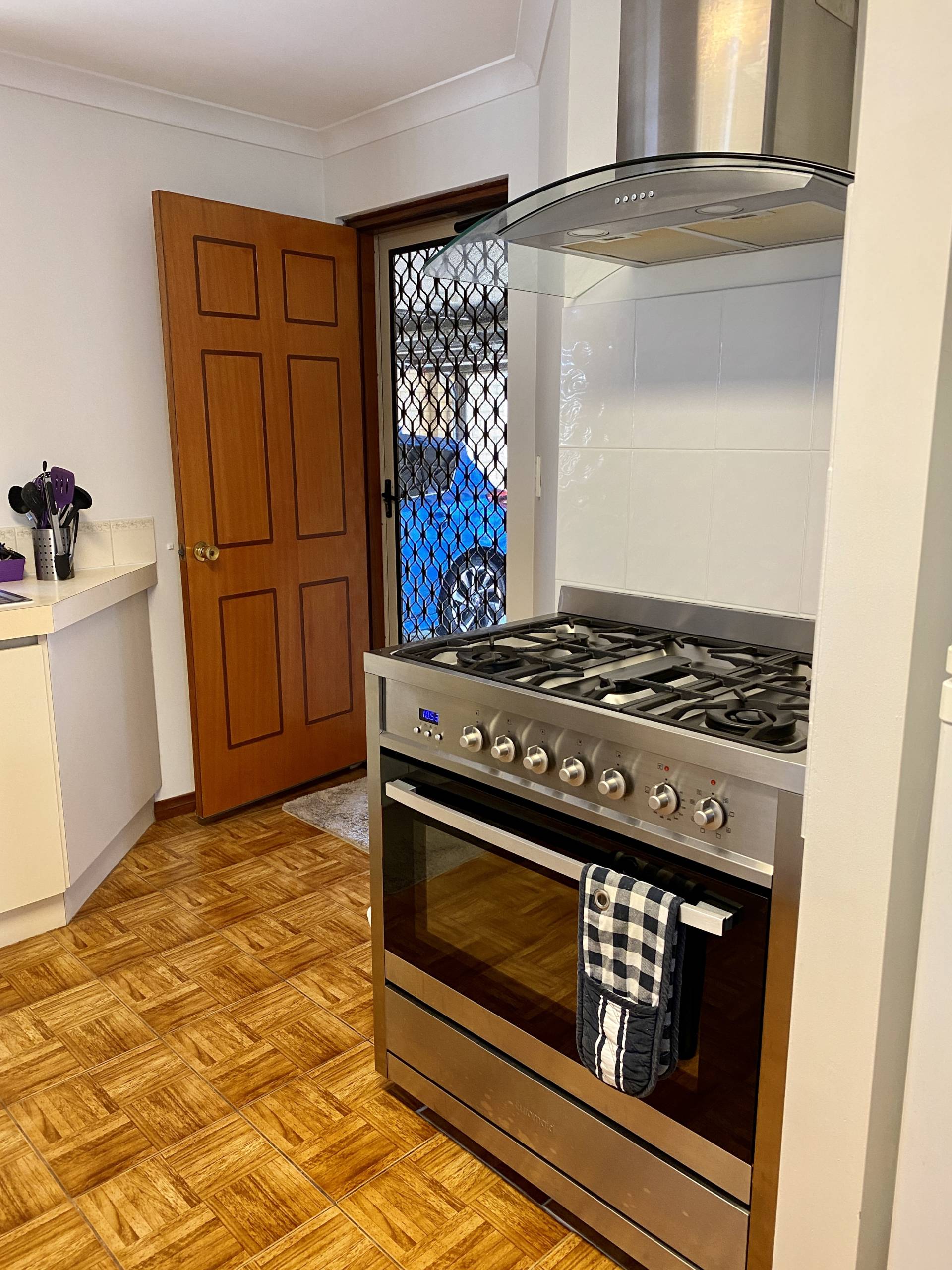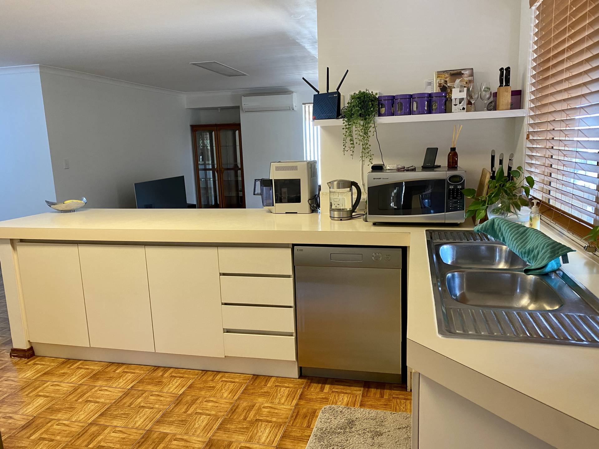 * Open plan kitchen, with dishwasher, larger sized oven,  fridge recess and shoppers entry.